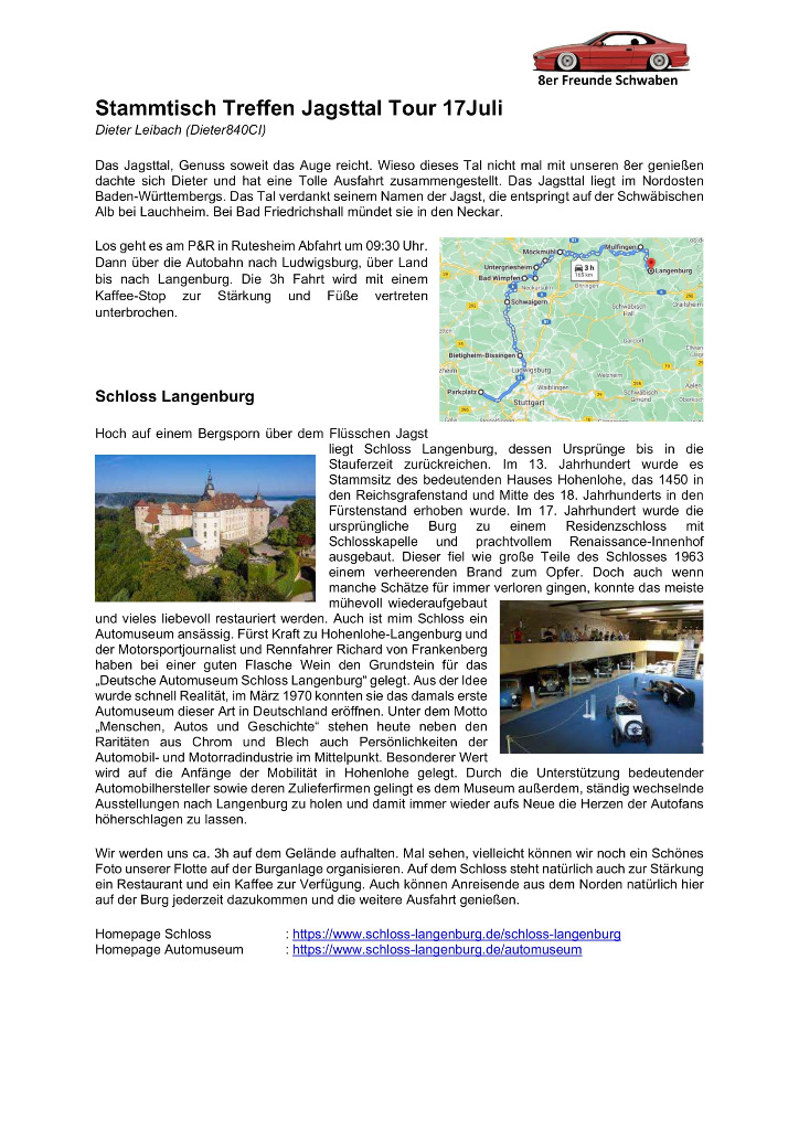 Selbstverständlich sind alle 8 er Fahrer und die interessierten 8 er Freunde aus nah und fern recht herzlich eingeladen.