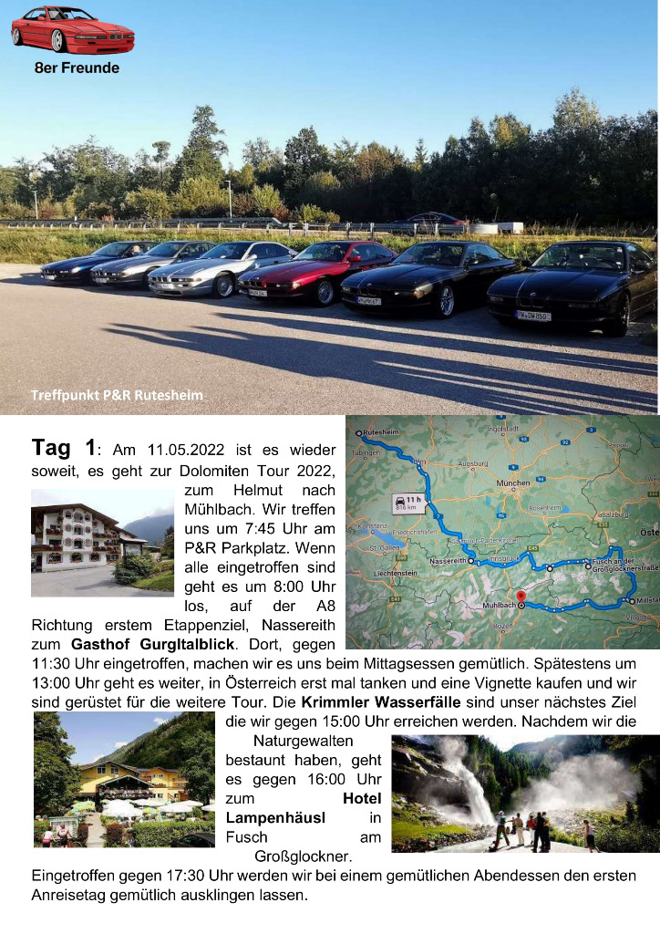 unsere Planung für die Dolomiten Tour 2022 ist fertig. Wer mit mag, einfach melden. Egal mit welchem Auto. wir haben diesesmal den Schwerpunkt Cabrio's... Auch ist die Tour auf max. 10 Fahrzeuge geplant. Soviele Zimmer sind halt geblockt. Sollten es mehr werden, versuchen wir nachzubuchen. Es wird sich dan schon eine Lösung finden...