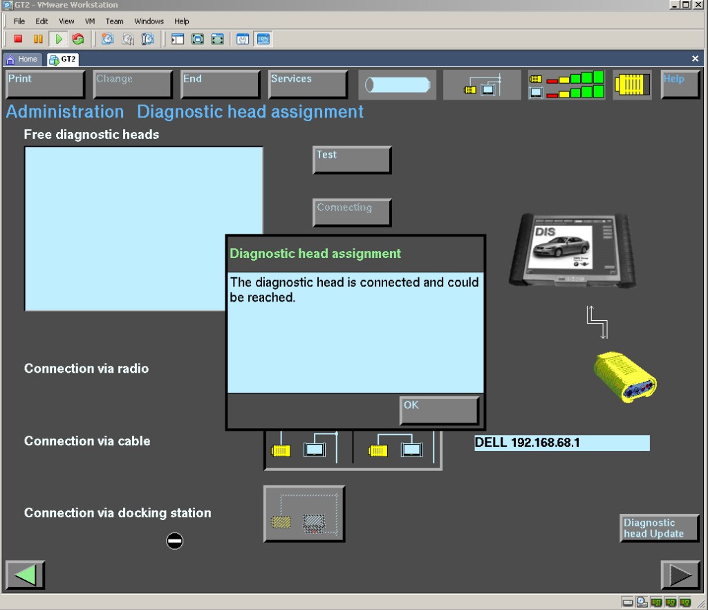 Ich bekomme alles verbunden und kann mit INPA den Fehlerspeicher auslesen. Bei DIS (V44) kann der Diagnosekopf verbunden werden.