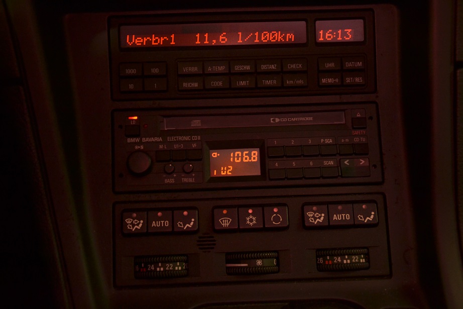 Jetzt habe ich doch das BMW Bavaria Electronic CDII, womit meine Kiste neu ausgeliefert worden war, eingebaut. Jetzt ist auch das "richtig". Es macht sich m.E. auch besser als das (spätere) Reverse RDS, weil das CDII sitzt bündig in dem Ausschnitt, während das RDS etwas vorsteht.