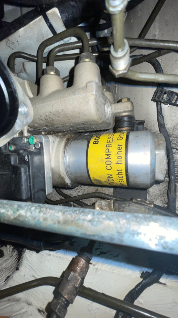 Ich habe nun gestern den Hauptbremszylinder demontiert, um eine etwas bessere Sicht auf das Hydroaggregat zu erlangen. Natürlich kann ich in dem Zustand keine Prüfung unter Druck mehr durchführen; ich kann aber die Stelle genauer betrachten, an der die Inspektionskamera (Endoskop) eine Tropfenbildung angezeigt hat.