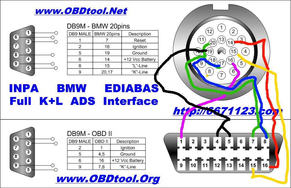 Dabei sind Pins 7+8 OBD-seitig gebrückt. Ist das so korrekt? Hat einer die KORREKTE Pinbelegung für den Anschluss des ADS-Interfaces?