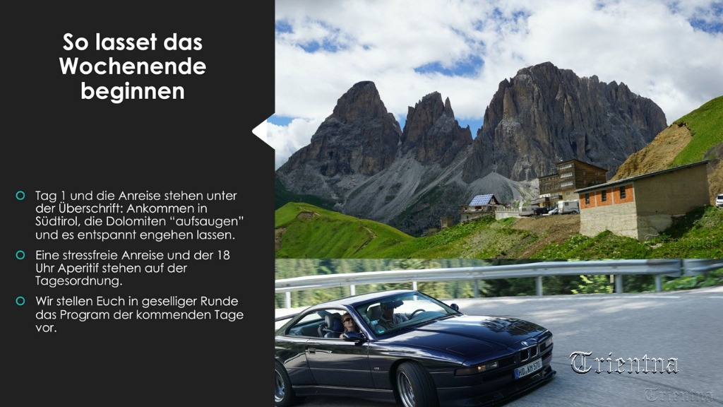 Um die Vorfreude der DolomitenTour anzuregen stelle ich das Programm vor