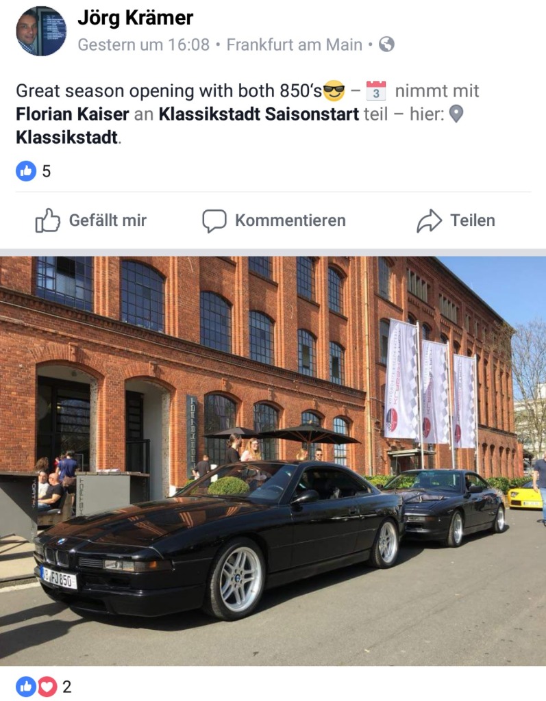 War ein schöner Event bei Traumwetter. Verdammt voll. Viele schöne Autos gesehen. Habe keinen 8er gesehen bis auf meinen :-)