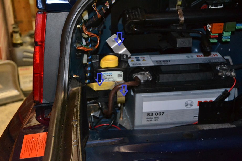 Ein "Fetisch" von mir ist der Einbau eines (drahtgebunden) fernsteuerbaren Trennrelais direkt bei der Batterie bei Fahrzeugen mit Batterie im Heck. Zunächst aus Sicherheitsgründen, weil die lange Plus-Leitung oft durch metallische Hohlräume verläuft und bei einem Versagen der Isolation es nichts nutzt, wenn vorne ein Trennschalter angebracht ist. Zudem ist es bequem, man betätigt im Fahrgastraum einen Taster und schon ist die Batterie getrennt, entweder für Arbeiten an der Elektrik, oder weil irgendwo wegen eines Defekts Rauchwölkchen aufsteigen. Vorher natürlich immer Zündung aus, weil ein laufender Motor auch ohne Batterie weiter läuft, bis die LiMa aufraucht.