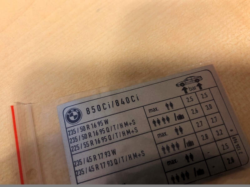 Johannes antwortete auf das Thema: Plakette Reifenluftdruck 850i