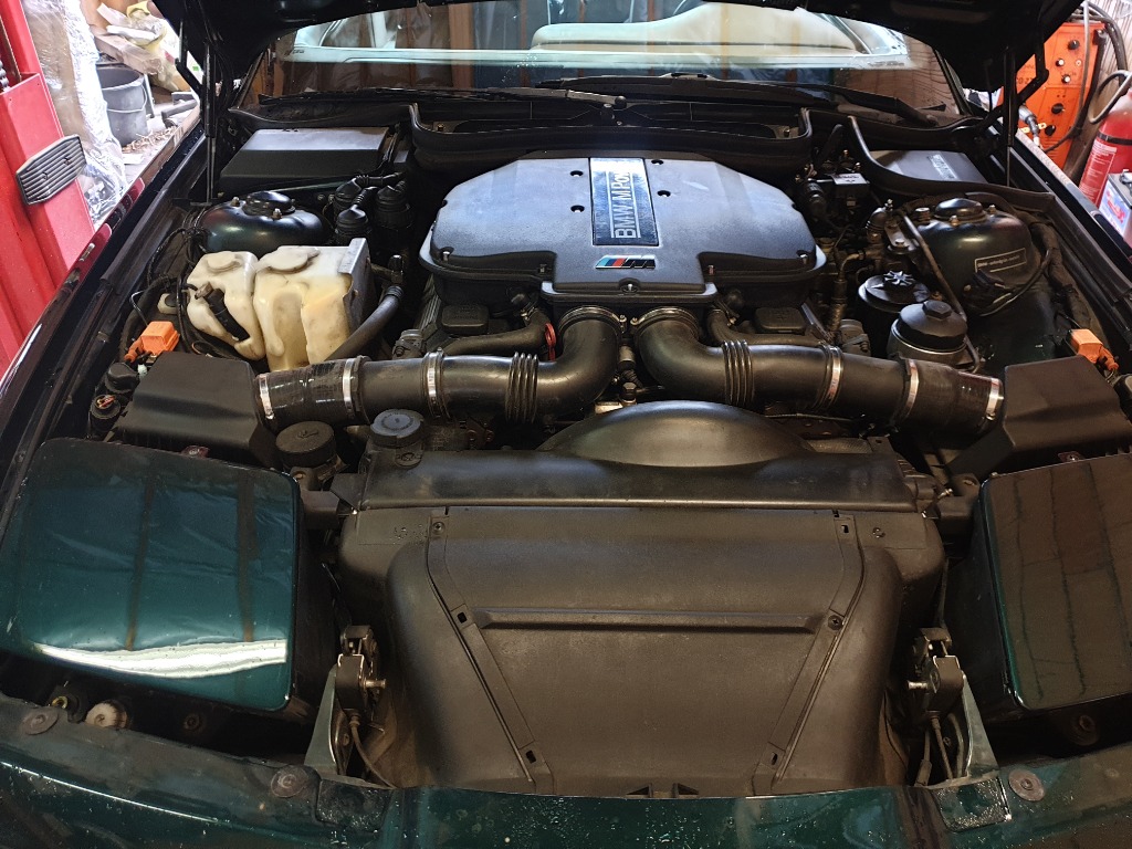 Kann mir vorstellen, dass er durch die 2 Luftfilterkästen vom V12 deutlich besser Luft bekommt wie der M62 ... gut gelöst.