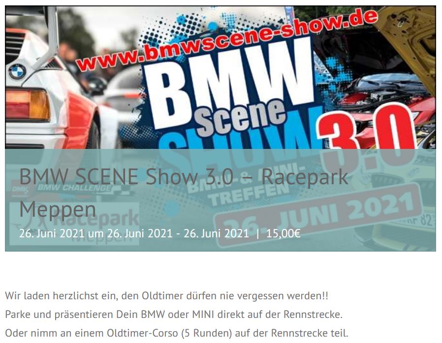 wir haben heute ganz spontan beschlossen in den Norden zu fahren. Zum Event BMW Scene Treffen im Race Park in Meppen.