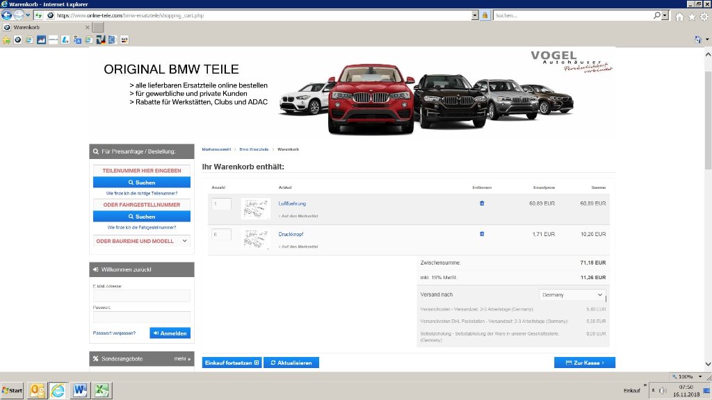 Der BMW-Teilekatalog listet nahezu alle Teile auf , allerdings sind viele davon, beim