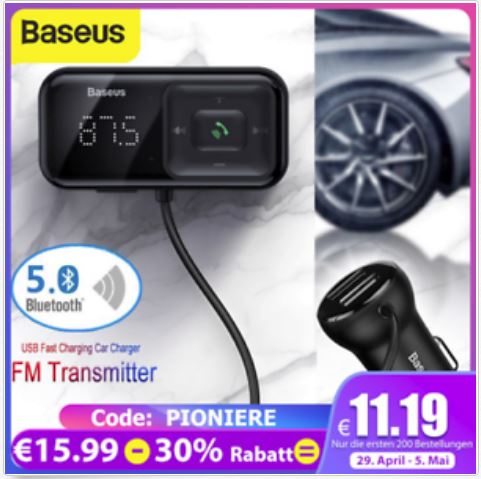 Anderseits arbeitet mein Radio noch richtig gut. Also habe ich mir so ein FM Transmitter bestellt und mal getestet.
