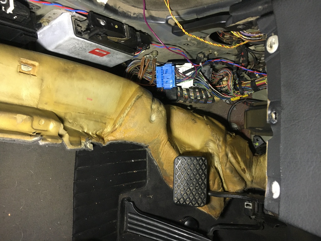 Hallo @ all, beim zerlegen meines Innenraumes ist mir unter dem Teppich hinter der Fußstütze ein "loses" Kabel aufgefallen. Keine Ahnung warum mein Vorbesitzer das Kabel durchtrennt hat.