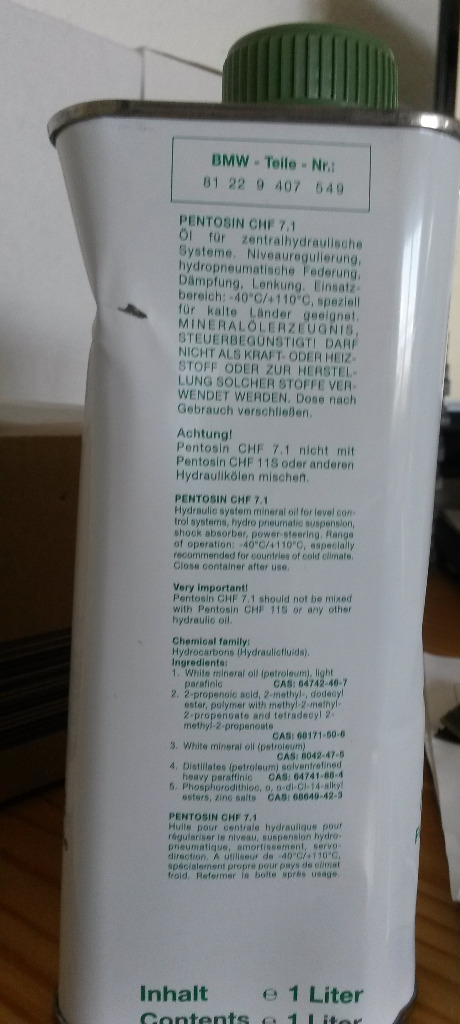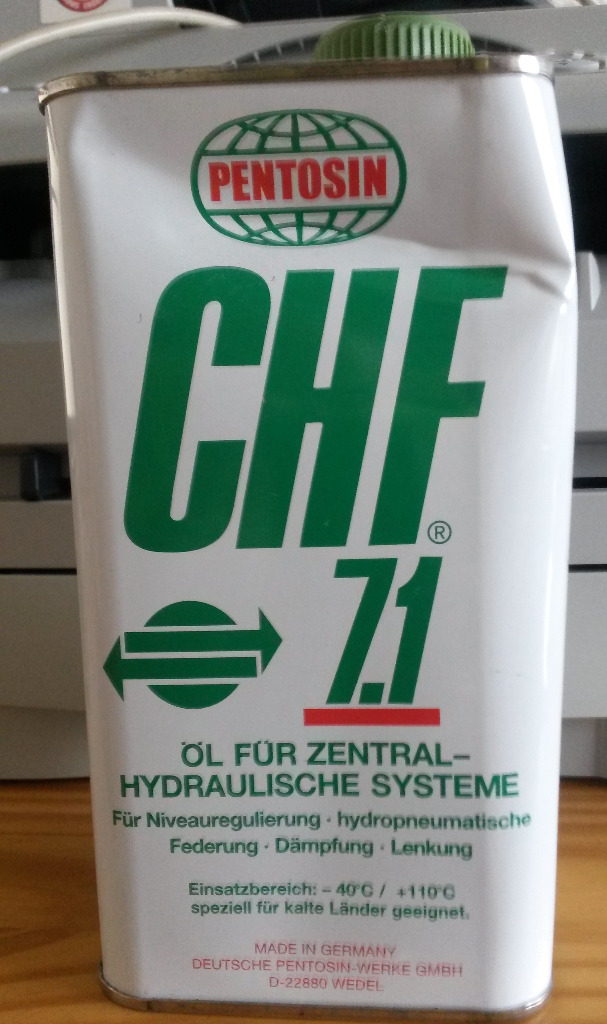 Ich habe noch ca. 10 Liter Pentosin CHF 7.1 im Keller liegen. Welche Farbe das Zeug hat, kann ich nicht sagen.