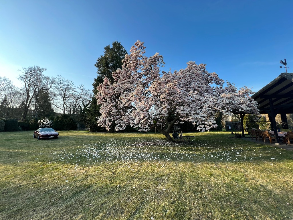 Die Wiese mit der wundervollen Magnolie steht bereit, die Laube ist aus ihrem Winterschlaf erwacht und erwartet euch am Samstag, den 26.03.2022 ab 18.00 Uhr.