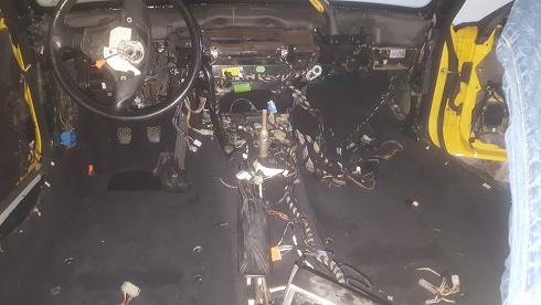 Nach ausbau der Instrumententafel stellte sich erfreulicherweise auf einem groben ersten Blick raus, daß ein Großteil der Verkabelungen der Bedienung Zentral über den Mittigen Kabelbaum am Kardantunnel läuft. Viele Kabel sollten also keiner "Verlängerung" bedürfen.