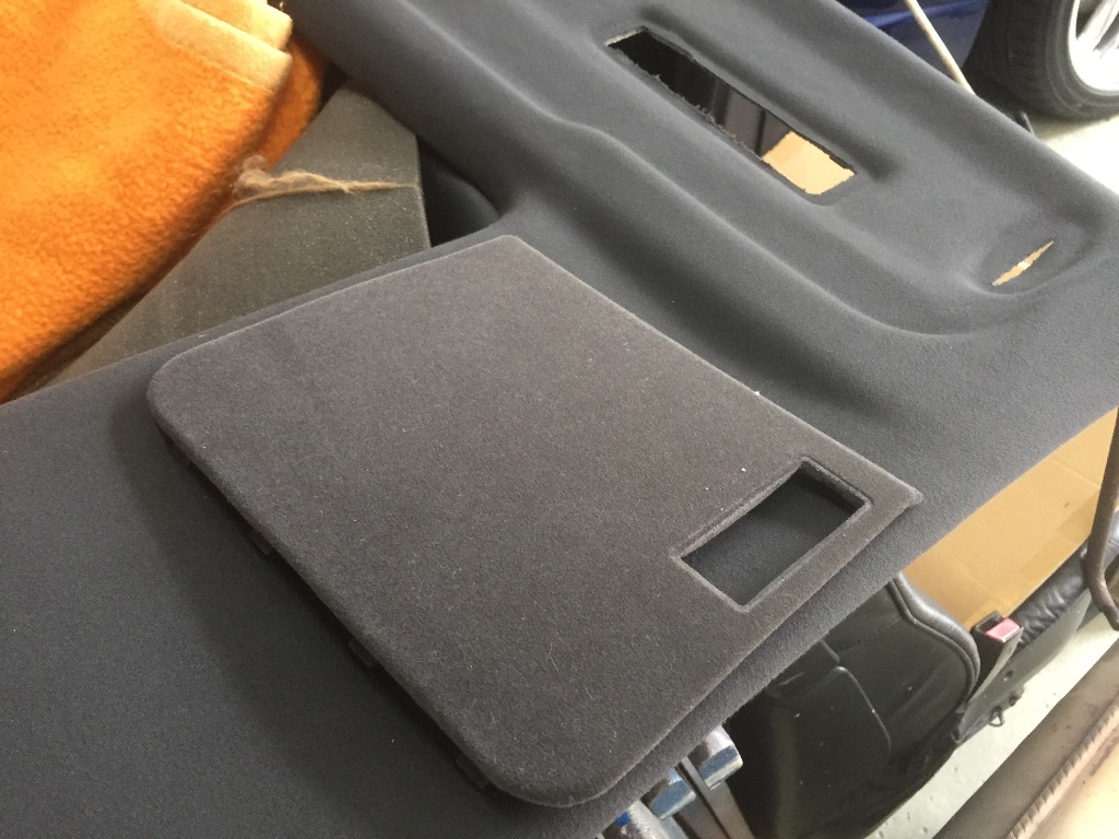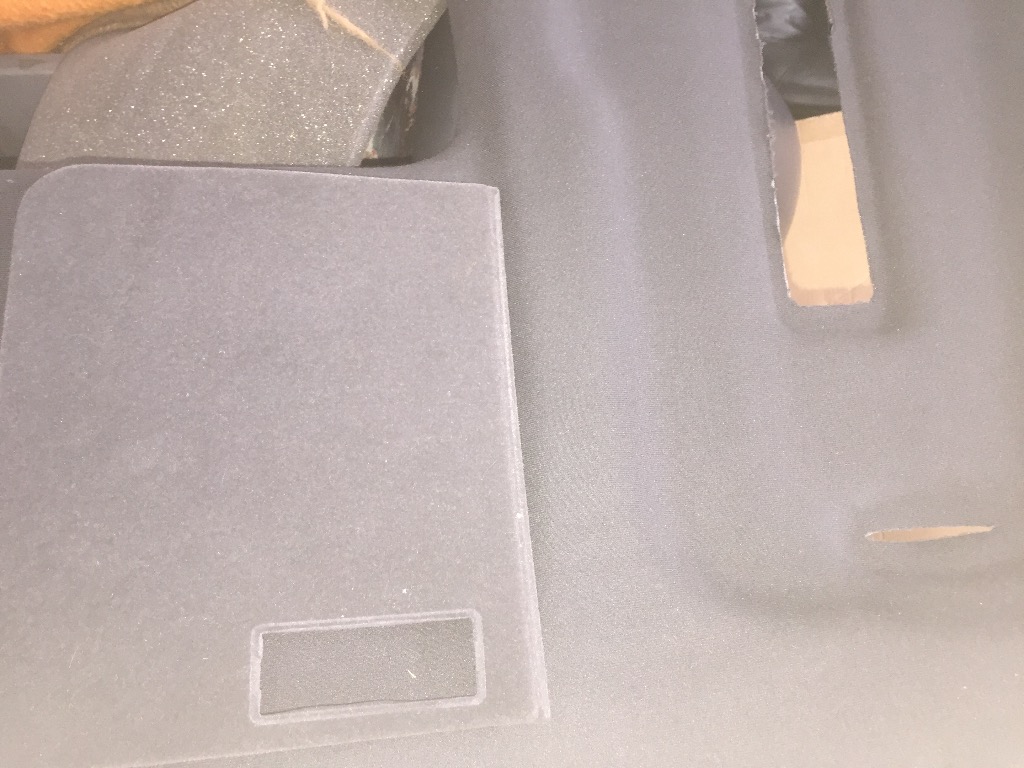 Nachdem ich nun alle Teile (bis auf die Hutablage) abgezogen und mit dem neuen Stoff bezogen habe, kann ich was zur Kaschierung der Teile sagen: