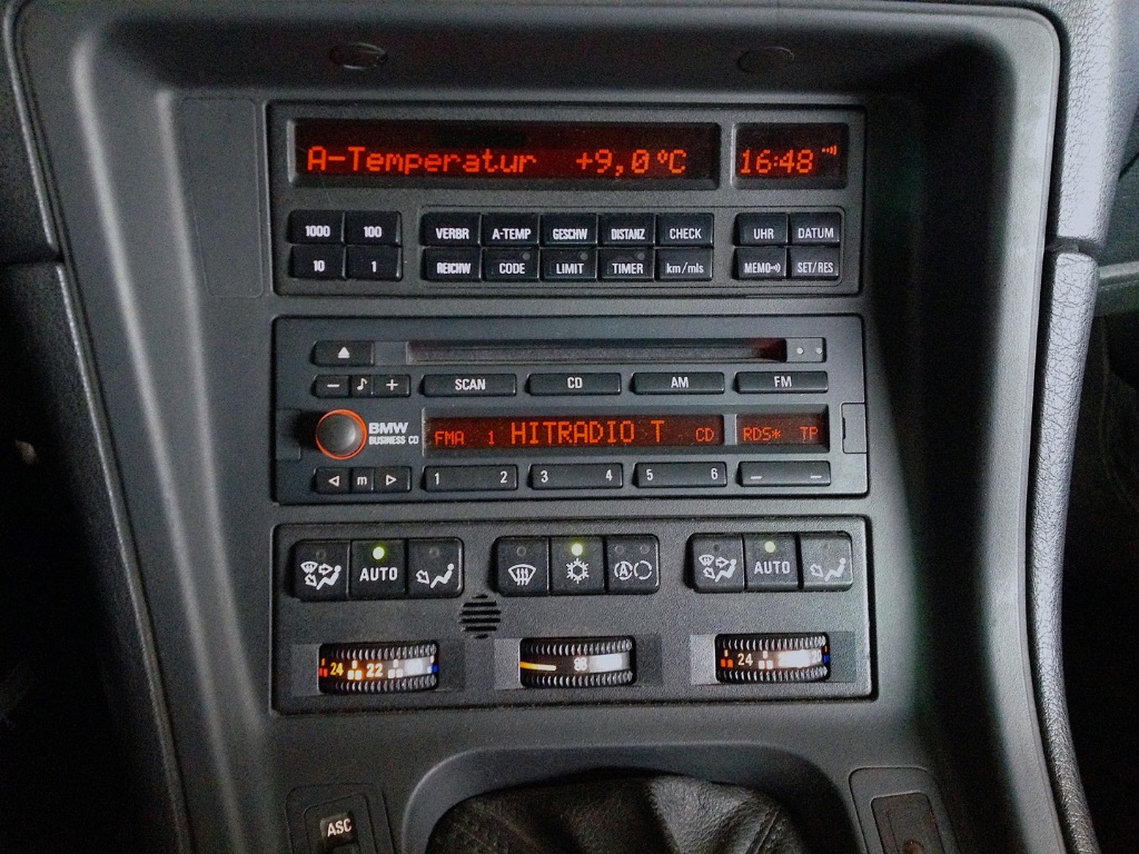Jetzt habe ich doch das BMW Bavaria Electronic CDII, womit meine Kiste neu ausgeliefert worden war, eingebaut. Jetzt ist auch das "richtig". Es macht sich m.E. auch besser als das (spätere) Reverse RDS, weil das CDII sitzt bündig in dem Ausschnitt, während das RDS etwas vorsteht.