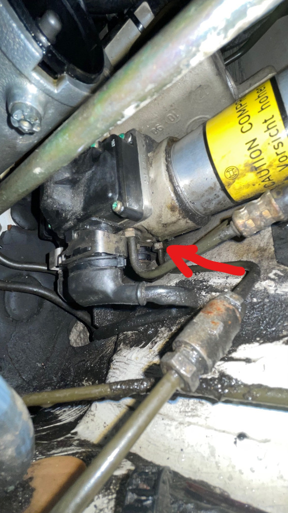 Ich habe nun gestern den Hauptbremszylinder demontiert, um eine etwas bessere Sicht auf das Hydroaggregat zu erlangen. Natürlich kann ich in dem Zustand keine Prüfung unter Druck mehr durchführen; ich kann aber die Stelle genauer betrachten, an der die Inspektionskamera (Endoskop) eine Tropfenbildung angezeigt hat.