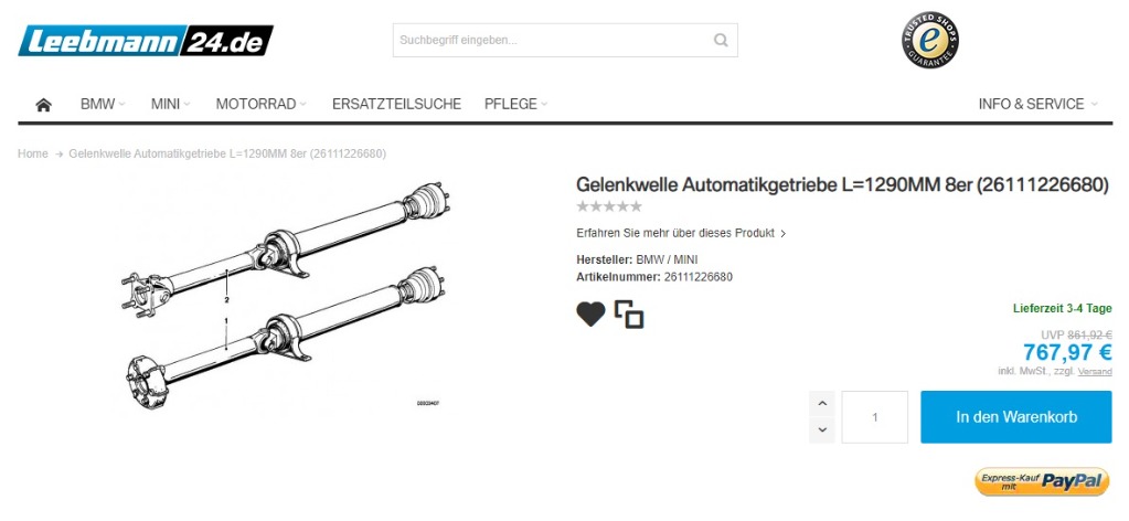 Bei Leebmann24 frisch eingetroffen: Kardanwellen für den M70 mit Automatikgetriebe zum Schnäppchenpreis