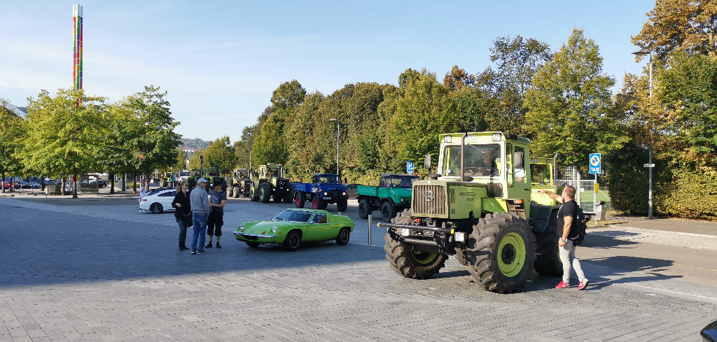 Alles war unterwegs auf der Straße und auch auf dem Museums Berg war kein Platz mehr. 125 Stück von verschiedenen Unimog hatten sich vorab angemeldet. Die Autos haben sich auf der Zubringerstraße gestaut und mann/frau musste auf einen Parkplatz warten. Ist halt immer besser wenn man früh genug da ist. Wir konnten daher so gut wie alle in einer Reihe Parken und waren 8 8er :top:. 1 E24 und zwei 3.0 waren noch dabei und 1 E28 :top: