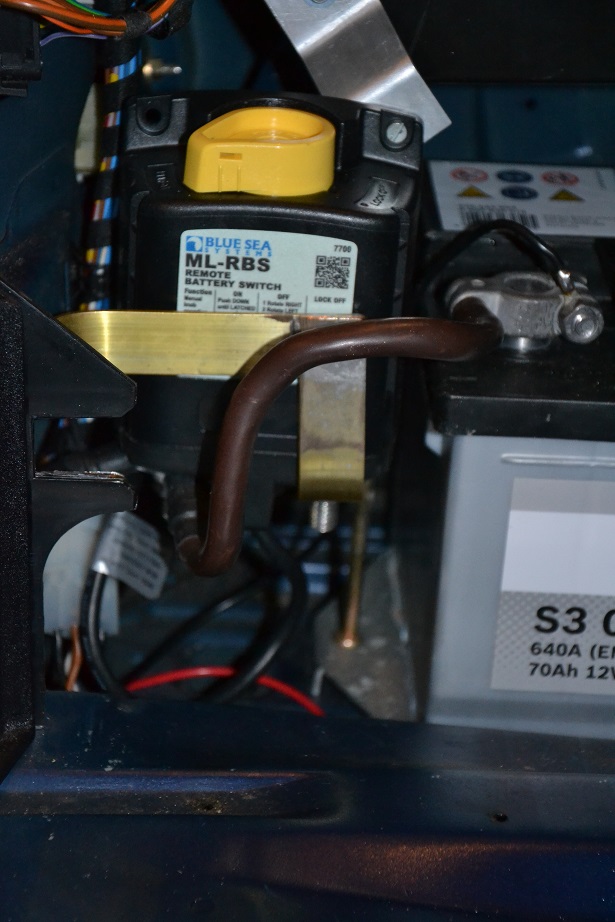 Ein "Fetisch" von mir ist der Einbau eines (drahtgebunden) fernsteuerbaren Trennrelais direkt bei der Batterie bei Fahrzeugen mit Batterie im Heck. Zunächst aus Sicherheitsgründen, weil die lange Plus-Leitung oft durch metallische Hohlräume verläuft und bei einem Versagen der Isolation es nichts nutzt, wenn vorne ein Trennschalter angebracht ist. Zudem ist es bequem, man betätigt im Fahrgastraum einen Taster und schon ist die Batterie getrennt, entweder für Arbeiten an der Elektrik, oder weil irgendwo wegen eines Defekts Rauchwölkchen aufsteigen. Vorher natürlich immer Zündung aus, weil ein laufender Motor auch ohne Batterie weiter läuft, bis die LiMa aufraucht.