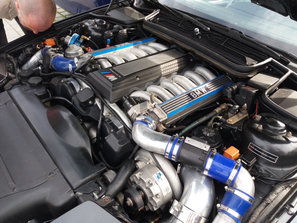 Michel war mit einem diamantschwarzen 850i, Bj. 92 mit Kompressorumbau und dezenter Verbreiterung aus der Schweiz angereist.