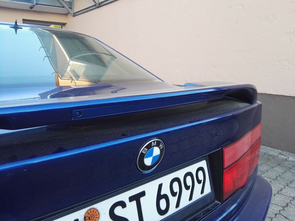 Im Erstbesitz gehörte der Wagen dem Inhaber eines BMW Autohauses. Der war Meinung ein Heckspoiler, natürlich original BMW, würde dem Wagen gut stehen. Leider ohne dritte Bremsleuchte, das hätte ja wenigstens noch ein bisschen Sinn.