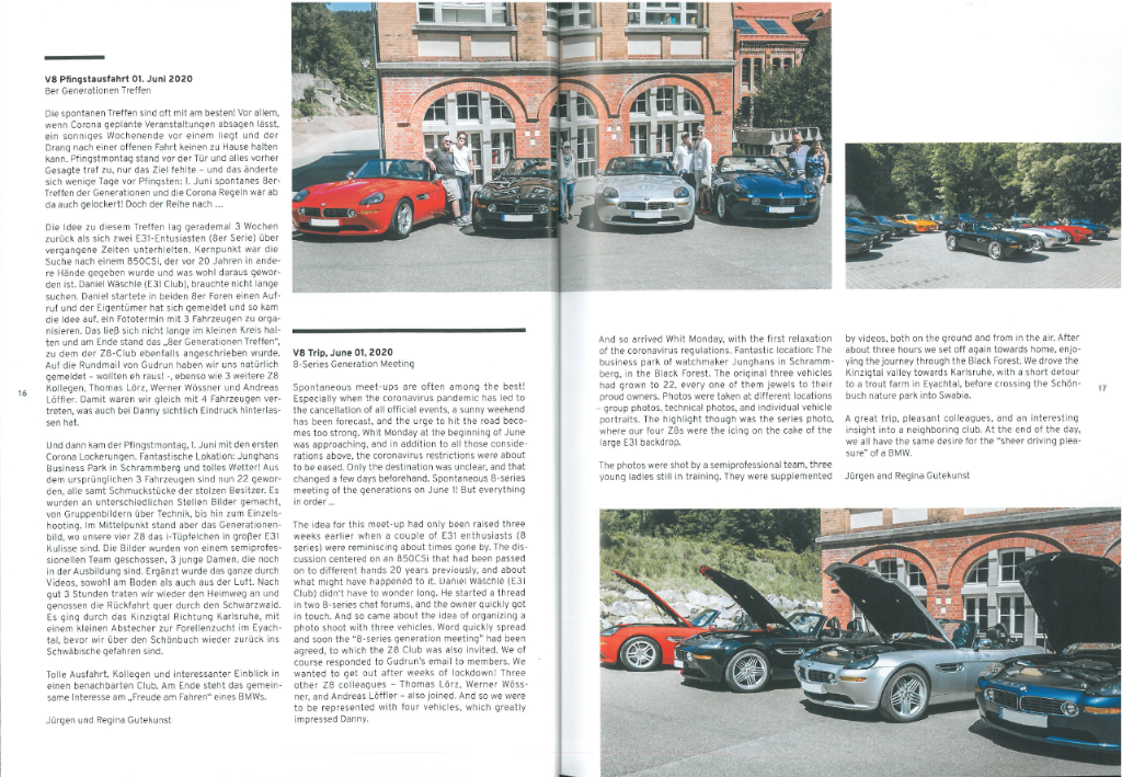 Lustig war noch: ein E31 Fahrer hat im Geschäftskontakt tage vorher mit einem Kunden über das Treffen geredet und er hatte schon vom Z8Club von diesem Event erfahren. Sie haben sich dann tatsächlich an diesem Tag getroffen... So klein ist die Welt.
