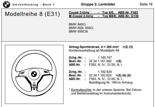 Seltsamerweise taucht es im Club E31 bereitgestellten Lenkrad Katalog nicht beim E31 als Option/Serienlenkrad auf.